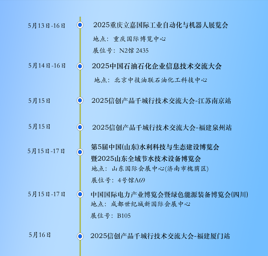 2025年5月8日至12日,宇航工業交換機成功舉辦了2025信創產品千城行技術交流大會——江蘇無錫站巡展,同期還精彩亮相第21屆鄭州工博會及全球儲能產業(重慶)展覽會。作為全國產工業交換機發起單位和中國戶外工業交換機銷量冠軍品牌,宇航工業交換機在三場活動中全面展示了最新推出的全系列國產工業交換機產品,宇航技術團隊向與會嘉賓深入解析了面向智慧城市、工業自動化、新能源儲能等關鍵領域的創新技術解決方案,充分彰顯了宇航工業交換機在工業通信領域的技術積累與戰略布局。