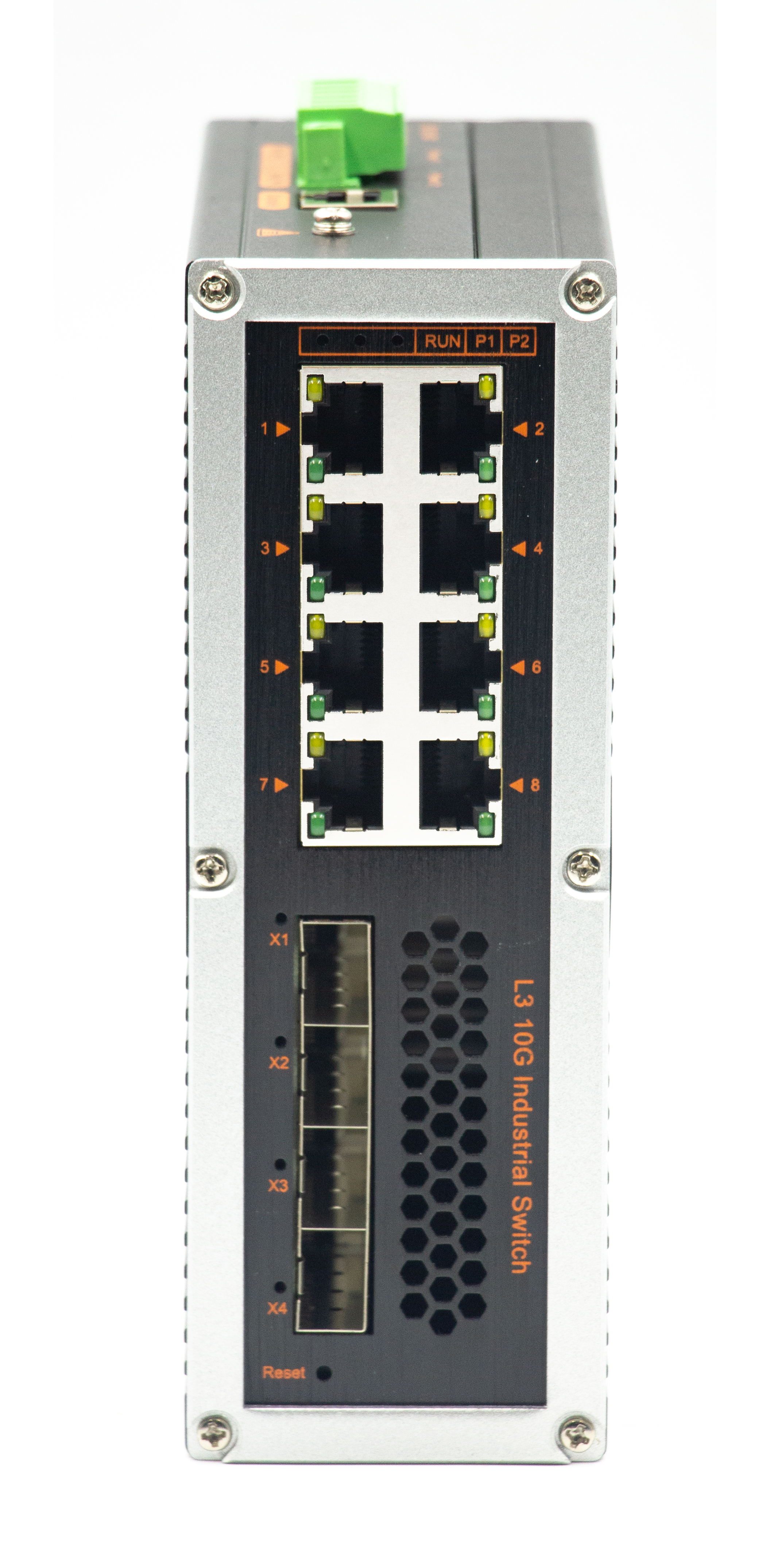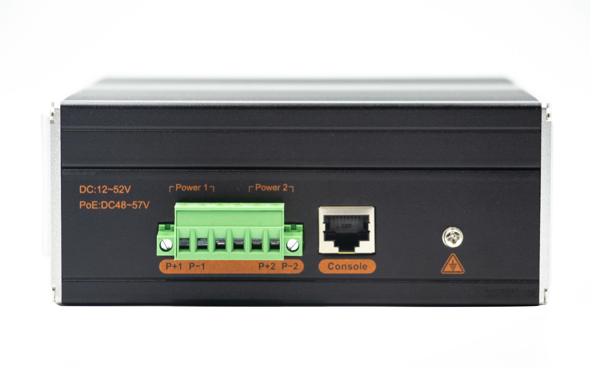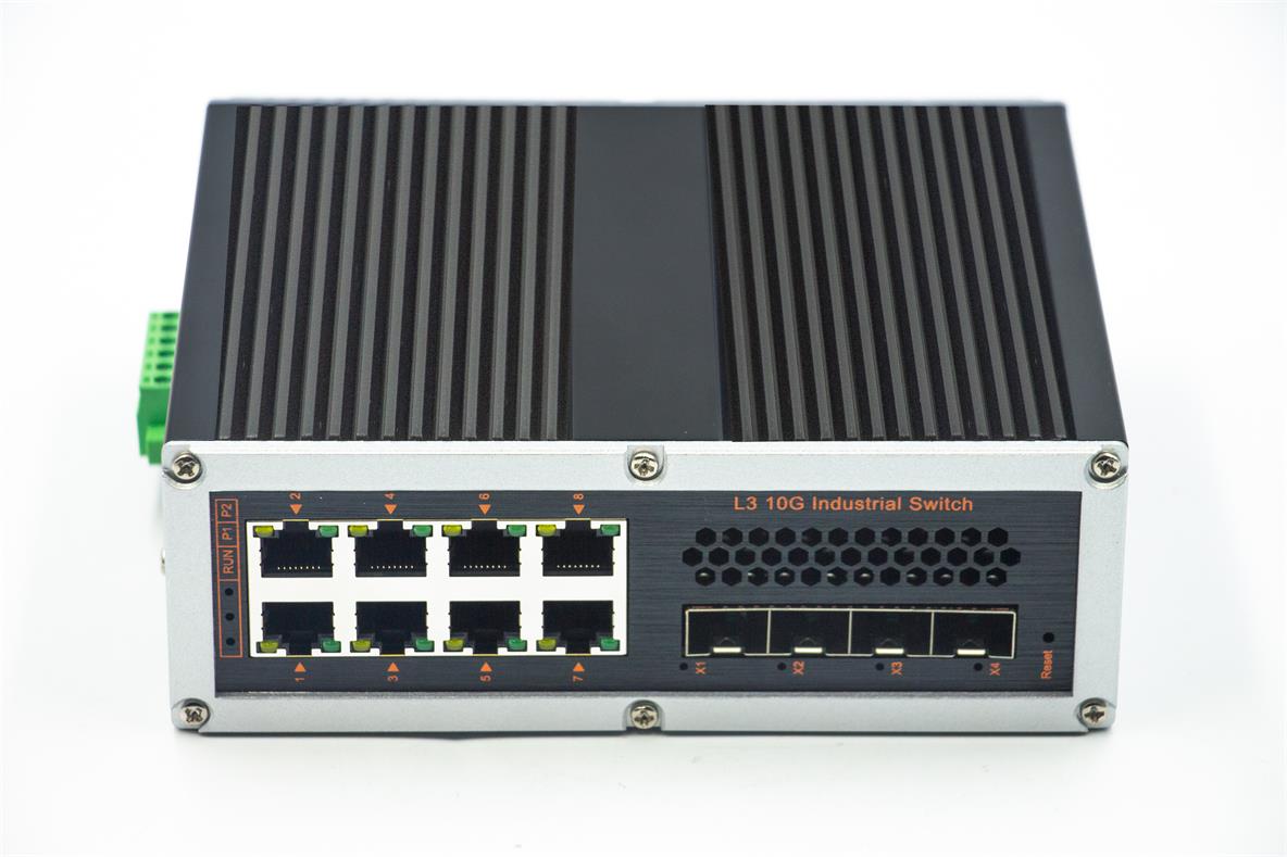 強三層網管M系列4個SFP+光(支持千兆/萬兆)8個電口,-導軌式 - DC12V-52V-寬溫(-40℃-80℃)。默認不含AC電源適配器和SFP模塊