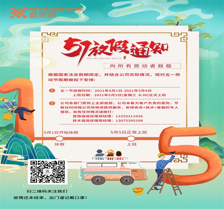 山東鑫諾商五一放假通知!!!